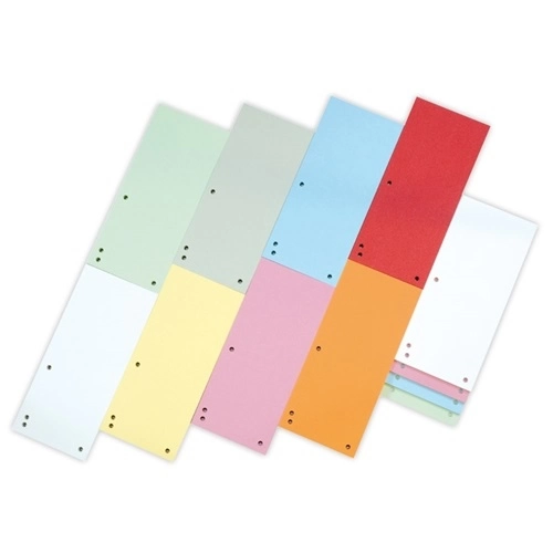 Kolorowe przekładki do segregatora, wykonane z kartonu. Dziurkowane - mogą być wpinane w pionie lub w poziomie. Szeroka gama zastosowań.