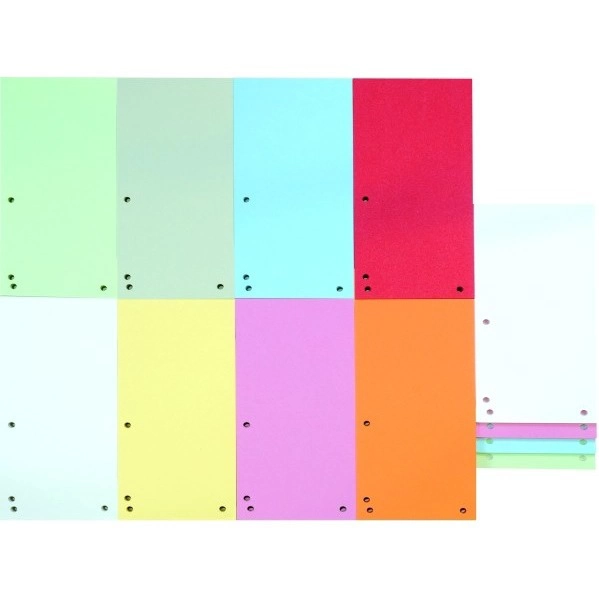 Kolorowe przekładki do segregatora, wykonane z kartonu. Dziurkowane - mogą być wpinane w pionie lub w poziomie. Szeroka gama zastosowań.