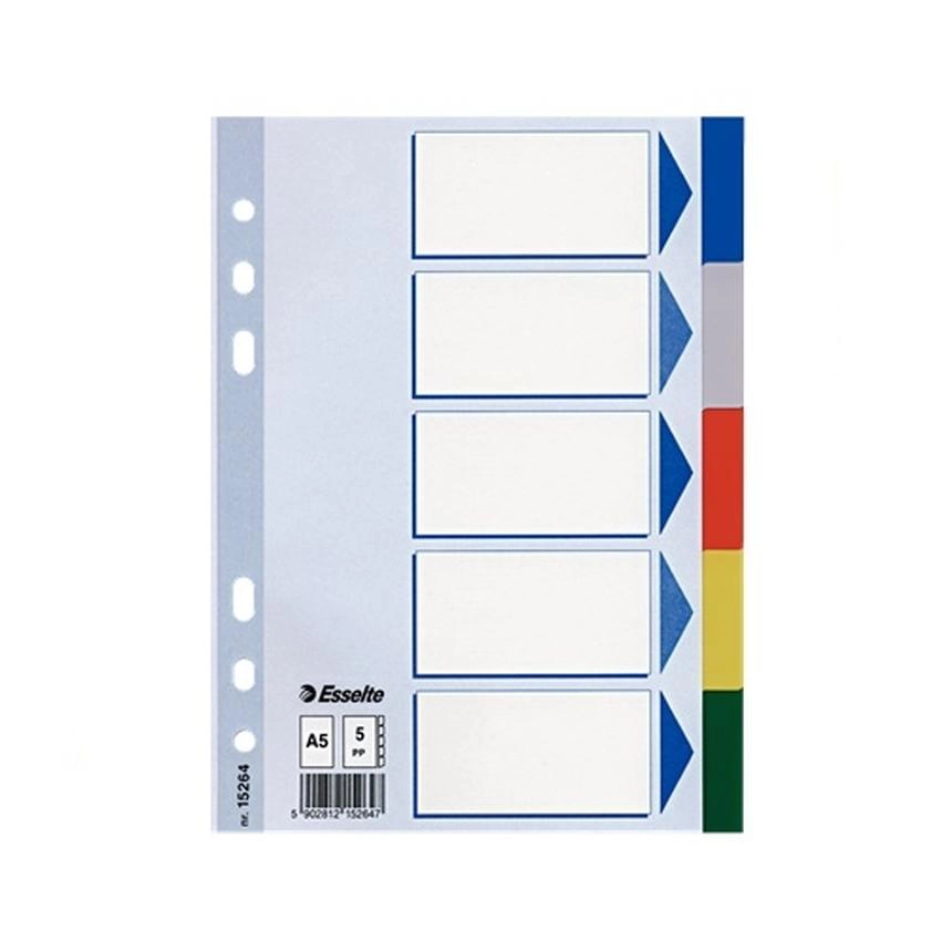 PRZEKŁADKI PLASTIKOWE KOLOROWE ESSELTE A5 - 5 kart