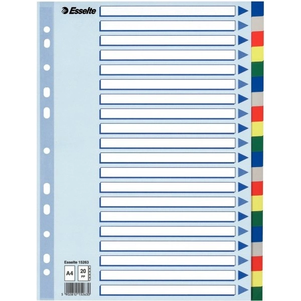 PRZEKŁADKI PLASTIKOWE KOLOROWE ESSELTE A4 - 20 kart