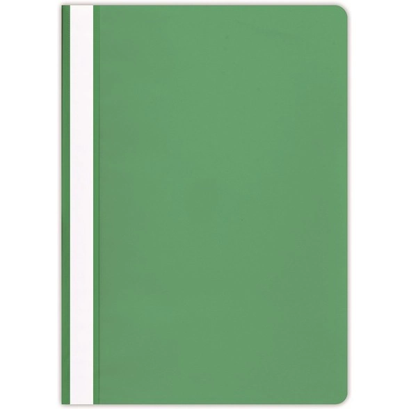 Uniwersalny, niewpinany skoroszyt wykonany z ekologicznego polipropylenu (przód - 140 mikronów, tył - 180 mikronów). Przezroczysta przednia okładka oraz kolorowa tylna. Posiada dwustronny pasek brzegowy, który pozwala na zapisywanie informacji.