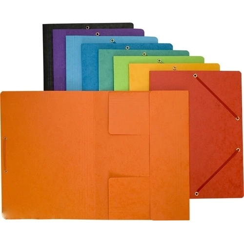 Teczka wykonana z bardzo mocnego kartonu. Posiada dwie narożne gumki w kolorze kartonu oraz trzy zakładki chroniące dokumenty przed wypadnięciem.