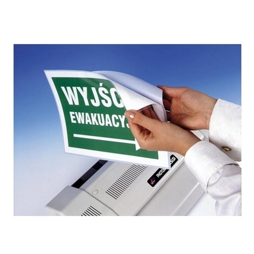 Folia samoprzylepna, przeznaczona do laminacji. Pozwala przykleić zalaminowany dokument w dowolnym miejscu, np. na szybie, zarówno od wewnętrznej jak i zewnętrznej strony. Nadaje się doskonale do tworzenia oznakowań typu naklejka.