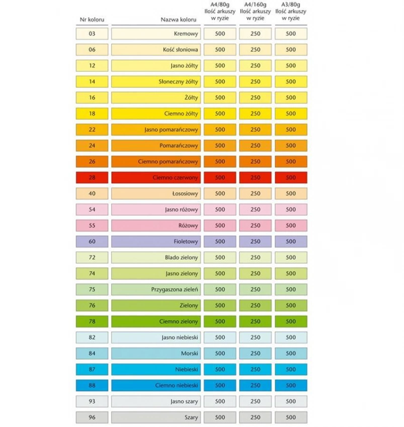 Wysokiej jakości, kolorowy papier, bezdrzewny, barwiony w masie, o szerokim wachlarzu kolorystycznym. Zalecany do wydruków faksowych, korespondencji oraz zaproszeń i ulotek. Pakowany w eleganckie przezroczyste opakowanie.