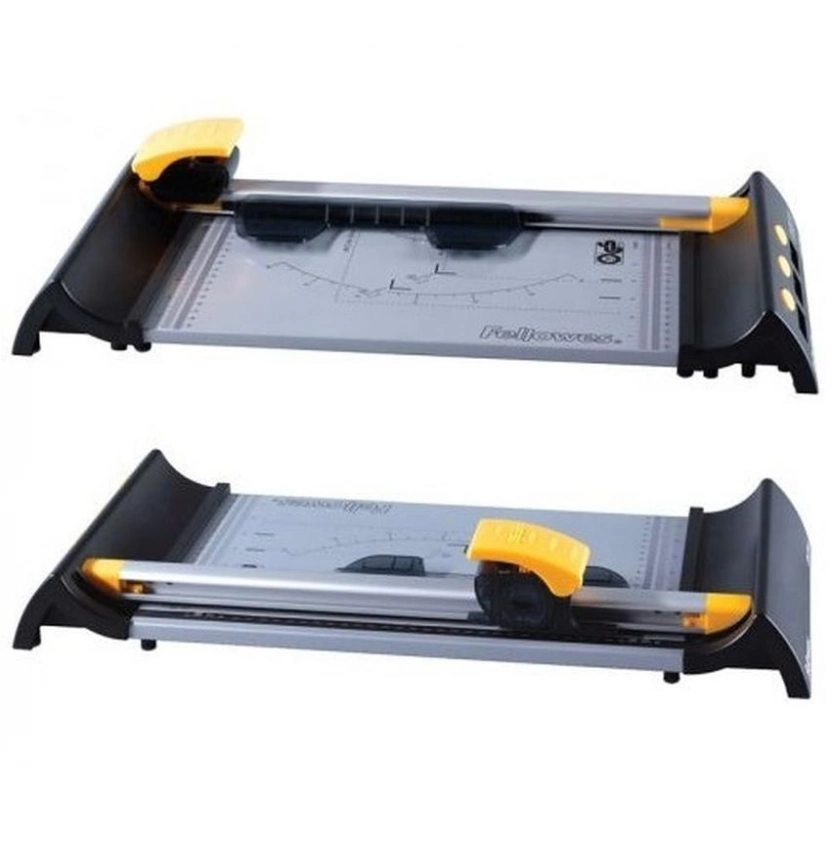 Zawiera bezpieczne w użyciu unikalne kasety Fellowes SafeCut z ostrzami ze stali nierdzewnej, ostrze pozostaje cały czas w osłonie kasety i jest wysuwane tylko w momencie cięcia. W zestawie 4 kasety z ostrzami: do cięcia prostego, falowanego, perforacji oraz zaginania.