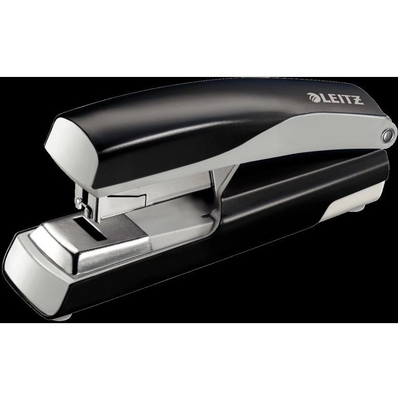 Dzięki takiemu systemowi wysokość zszywki zmniejsza się o 30%, co w efekcie znacznie zwiększa pojemność segregatorów, koszulek lub teczek. Wykonany z metalu oraz plastikowych elementów. Antypoślizgowa plastikowa podstawka zabezpiecza przed rysowaniem mebli.