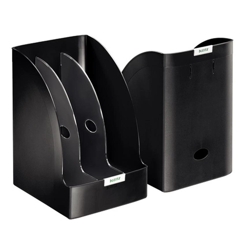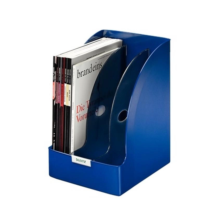 Najwyższej jakości pojemnik na czasopisma o wyjątkowo dużej pojemności. Wzornictwo i kolorystyka spójna z linią produktów na biurko Leitz Plus. Bezpiecznie przechowuje obszerne publikacje w formacie A4 typu katalogi, opracowania czy raporty.