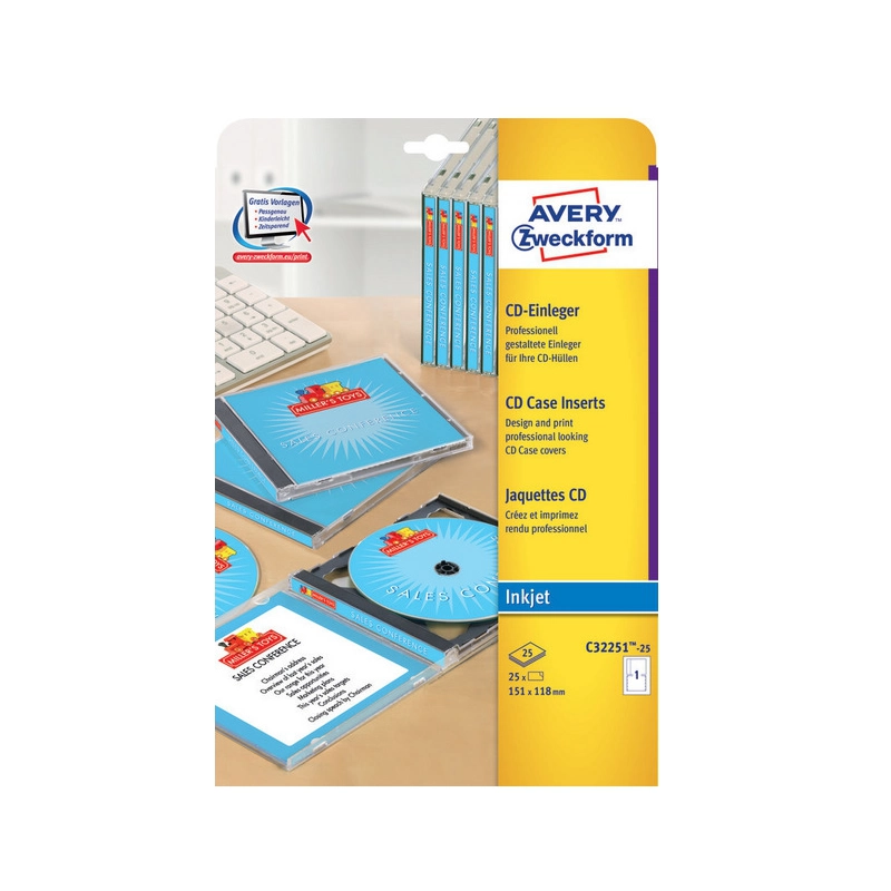 ETYKIETY NA NOŚNIKI DANYCH wkłady do pudełek CD, InkJetPhoto 151 x 118 mm, 25 szt., druk - atramentowe