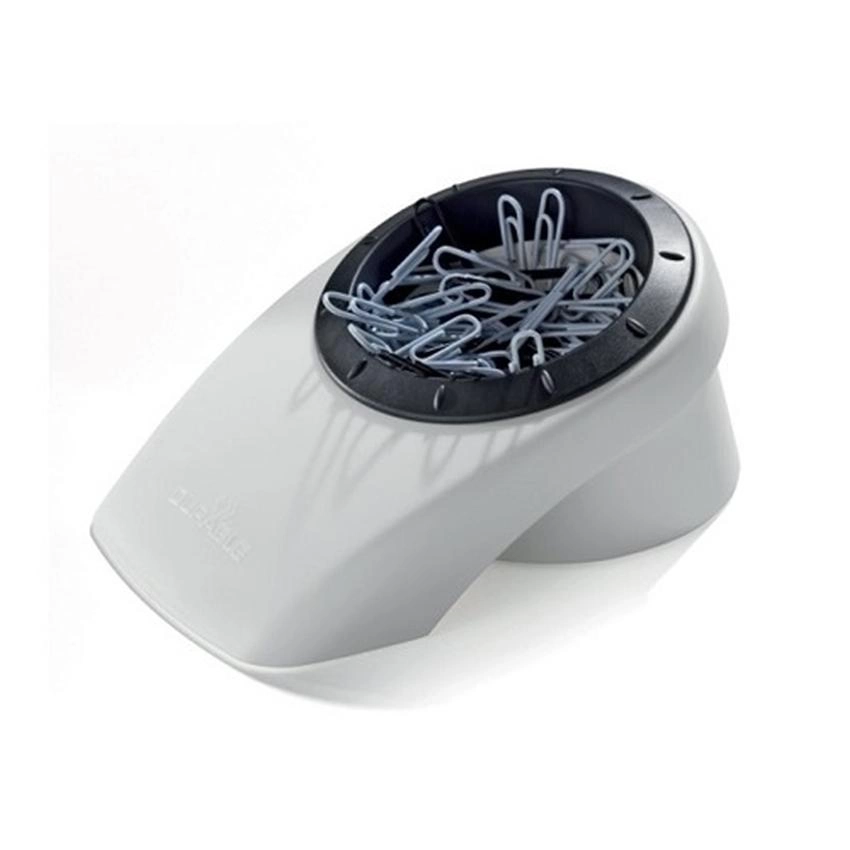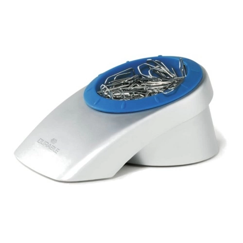 Bardzo elegancki podajnik wykonany z wysokiej jakości tworzywa sztucznego. Wyposażony w magnetyczna obręcz, która ułatwia wyciąganie pojedynczych spinaczy. Podajnik posiada gumowe nóżki, które gwarantują jego stabilność i przyczepność.