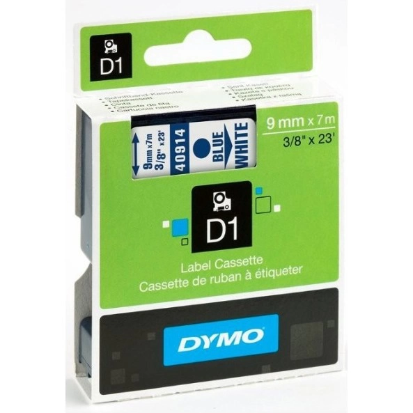 TAŚMY D1 DO DRUKAREK DYMO - 9 MM X 7 M niebieski nadruk, biała