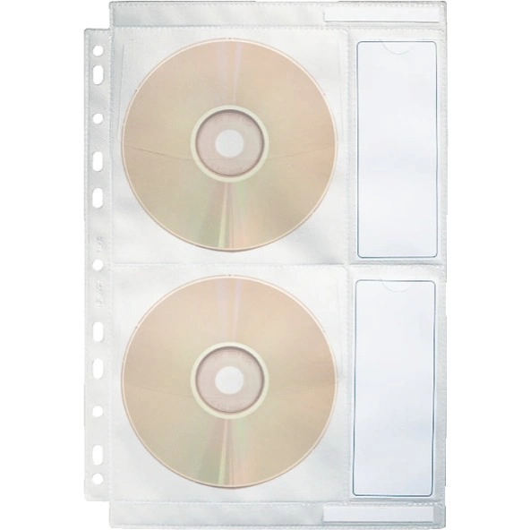 Koszulka na 4 CD. Specjalna warstwa ochronna zabezpiecza płytę CD. Uniwersalna perforacja umożliwia przechowywanie płyt w segregatorze lub skoroszycie. Pozwala na zaoszczędzenie miejsca na biurku.