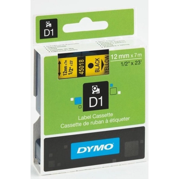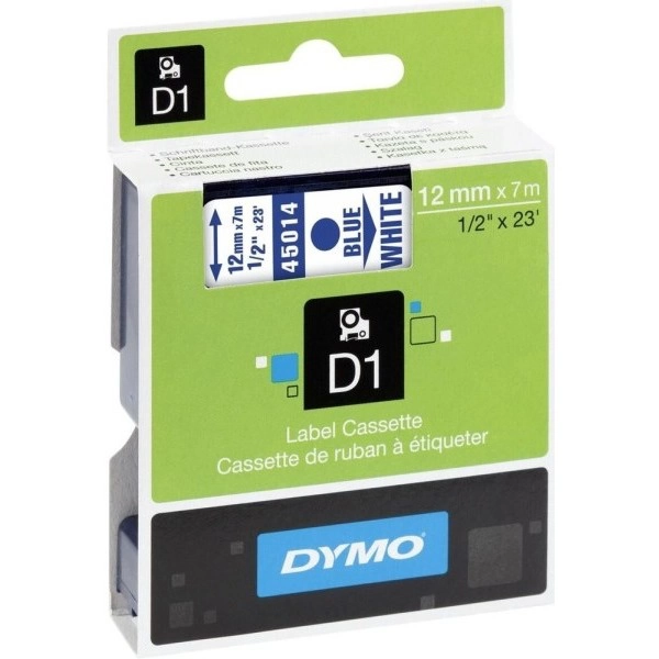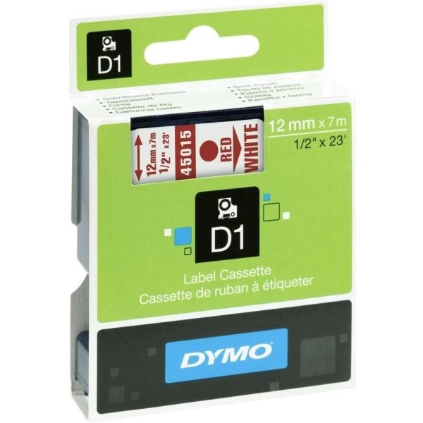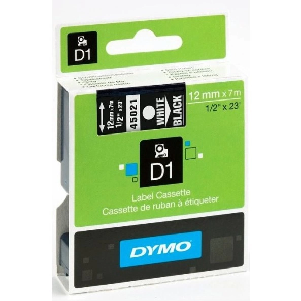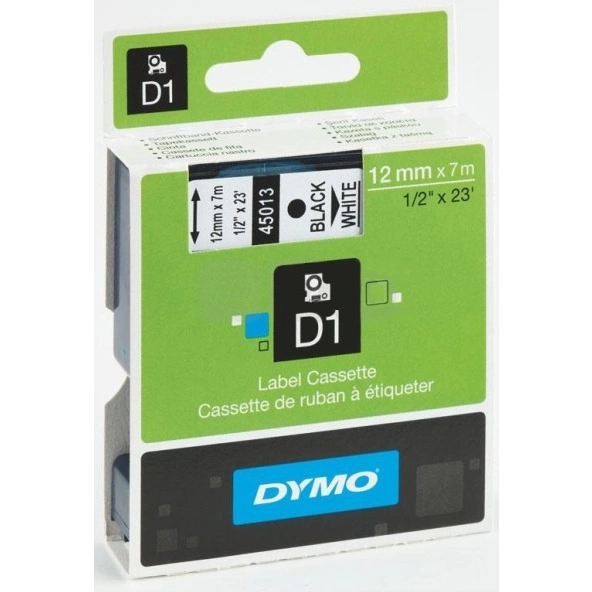 Taśmy Dymo typu D1 o wymiarach 12 mm na 7 metrów stworzono specjalnie dla drukarki etykiet Dymo Label Manager, Rhino lub Label Point.