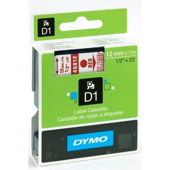 TAŚMY D1 DO DRUKAREK DYMO - 12 MM X 7 M biały nadruk,  przezroczysta
