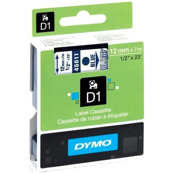 TAŚMY D1 DO DRUKAREK DYMO - 12 MM X 7 M biały nadruk, przezroczysta