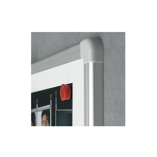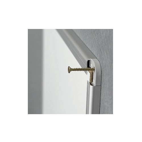Rama wykonana z profilu aluminiowego officeBoard w kolorze srebrnym, wykończona eleganckimi, popielatymi narożnikami. Dodatkowo produkt posiada wygodną półkę o długości 30 cm, która zmieści wszelkiego rodzaju przybory niezbędne podczas prezentacji.