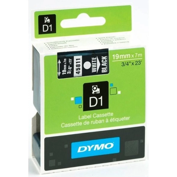 Taśmy Dymo typu D1 o wymiarach 19 mm na 7 metrów stworzono specjalnie dla drukarki etykiet Dymo Label Manager, Rhino lub Label Point.