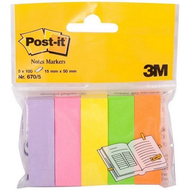ZNACZNIKI SAMOPRZYLEPNE POST-IT 5 bloczków 15 x 50 mm neonowe