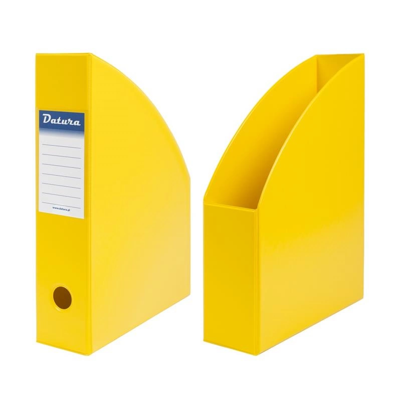 Pojemnik na dokumenty wykonany z wysokiej jakości folii PVC wzmocnionej kartonem. Przeznaczony do przechowywania czasopism i dokumentów.