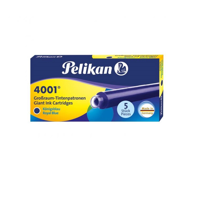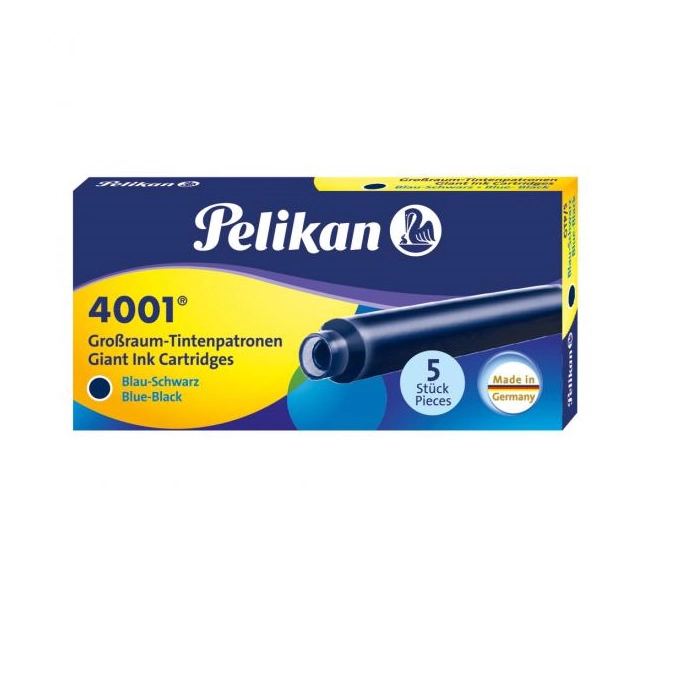Atrament Pelikan 4001 w nabojach o pojemności 1,4 ml pakowanych po 5 naboi, zaprojektowany tak, by chronić pióro wieczne i stalówkę zapewniając równocześnie maksymalny komfort pisania.