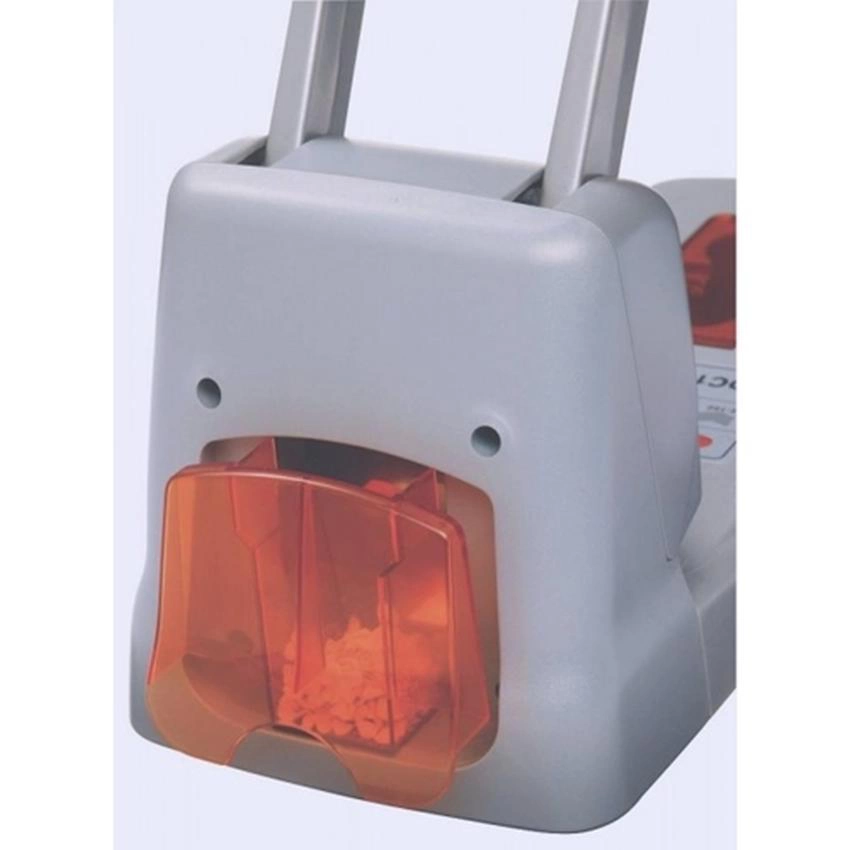 W obudowie dziurkacza znajduje się pojemnik na zapasowe ostrza i podkładki, aby zawsze były pod ręką w konieczności wymiany na nowe.