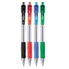 Automatyczny długopis z przezroczystym korpusem, gumowym uchwytem i wymiennym wkładem.