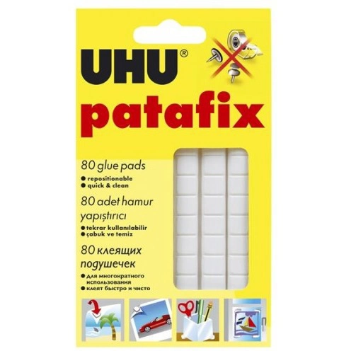 Biała masa samoprzylepna, montażowa, wielokrotnego użytku. Do trwałego lub czasowego mocowania papieru i małych przedmiotów do drewna, tynku, szkła, metalu, plastiku, porcelany i wielu innych. Wiele zastosowań w biurze, szkole i domu.