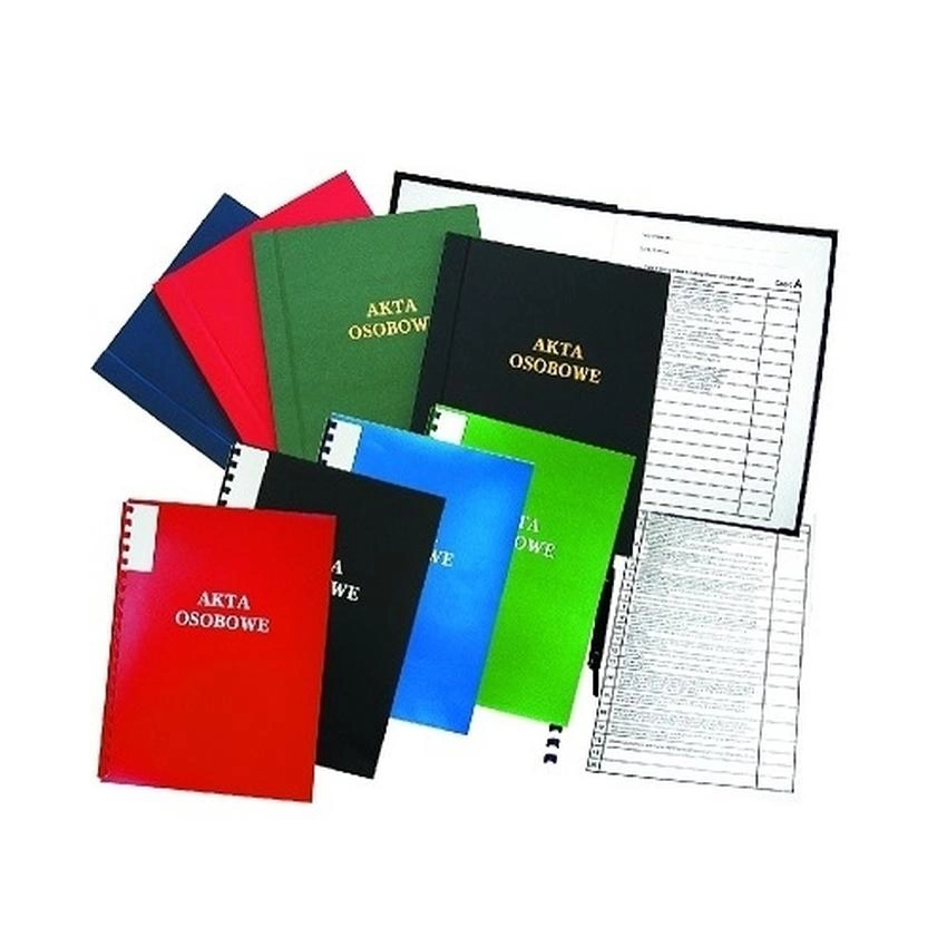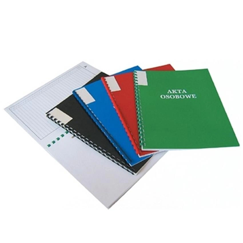 Teczka do akt osobowych z oklejaną okładką typu segregator oraz 2-ringowym mechanizmem. Wyposażona w kartonowe przekładki A, B, C, obustronnie zadrukowane tabelami z treścią, umożliwiającymi opisanie dokumentów.
