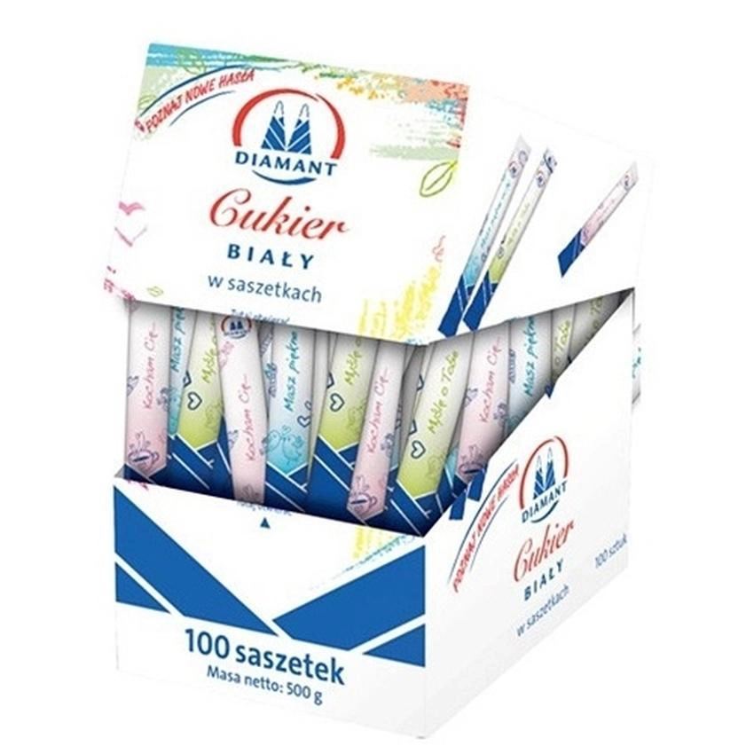 Cukier w saszetkach w opakowaniu 500 g (100 x 5 g).