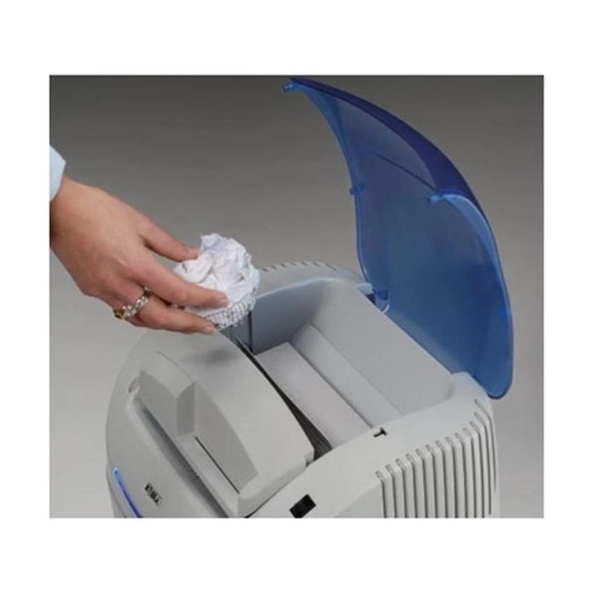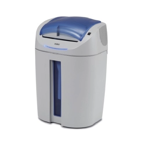Niszczarka przeznaczona do średniej wielkości biur i urzędów. Dzięki specjalnej pokrywie daje gwarancję bezpiecznego użytkowania. Osobny kosz i szczelina na papier i nośniki danych umożliwiają segregację odpadów. Cichy napęd łańcuchowy zapewniający sprawne funkcjonowanie niszczarki. Trwałe noże odporne na zszywki i spinacze, niezawodna elektronika.
