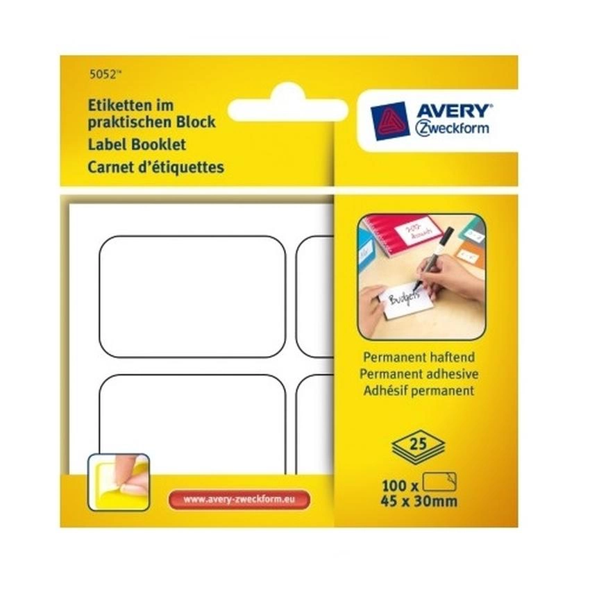 ETYKIETY UNIWERSALNE W BLOCZKU DO OPISU RĘCZNEGO AVERY 45 x 30 mm, 100 szt., białe, trwałe