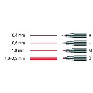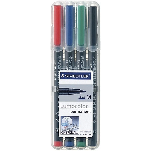 Uniwersalny pisak do pisania na foliach do rzutników i po prawie wszystkich gładkich powierzchniach, grubości S,M, F i B służą do opisywania płyt CD/DVD.