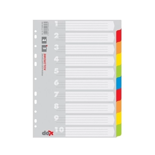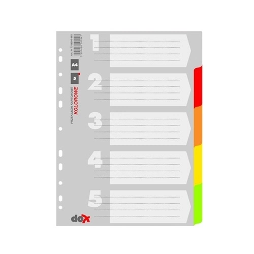 PRZEKŁADKI KARTONOWE KOLOROWE DOX A4 5 kart