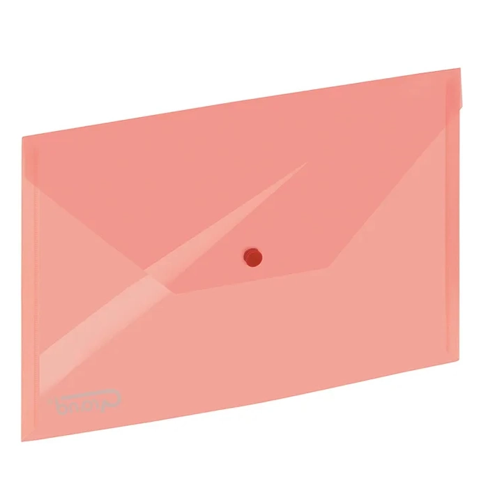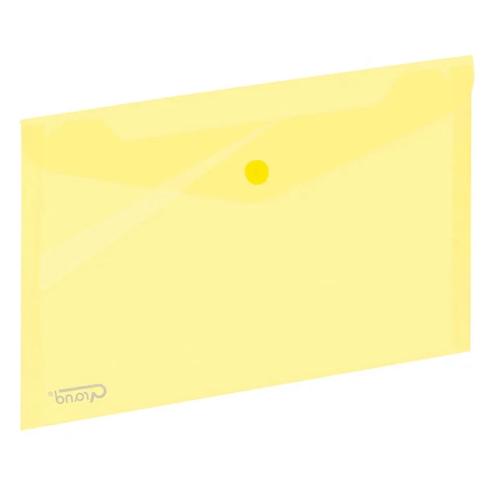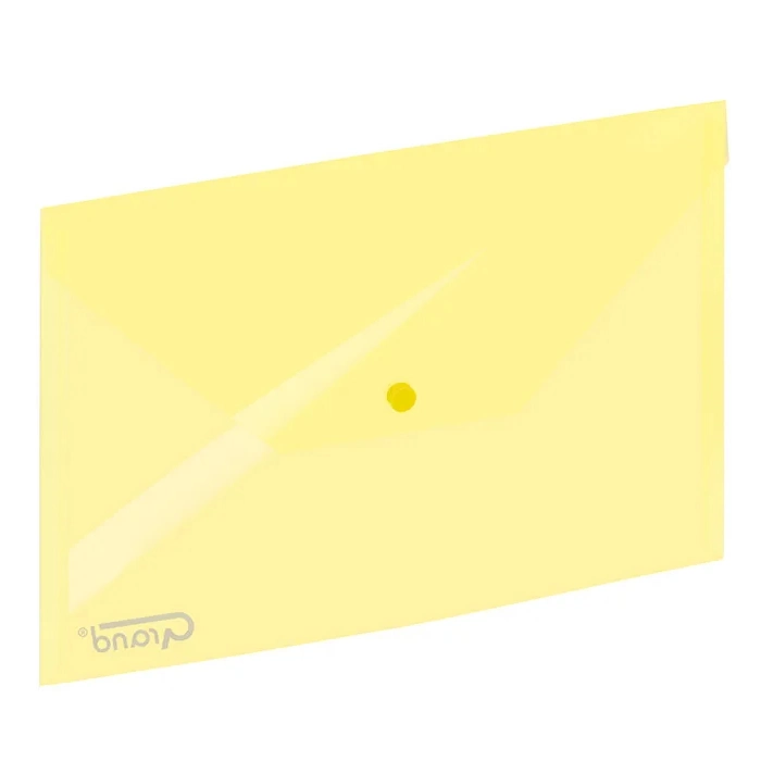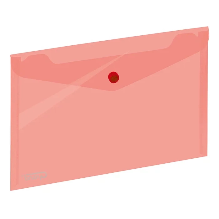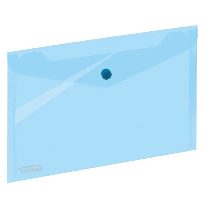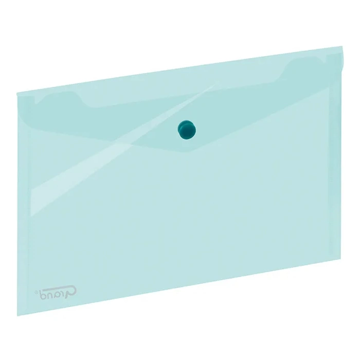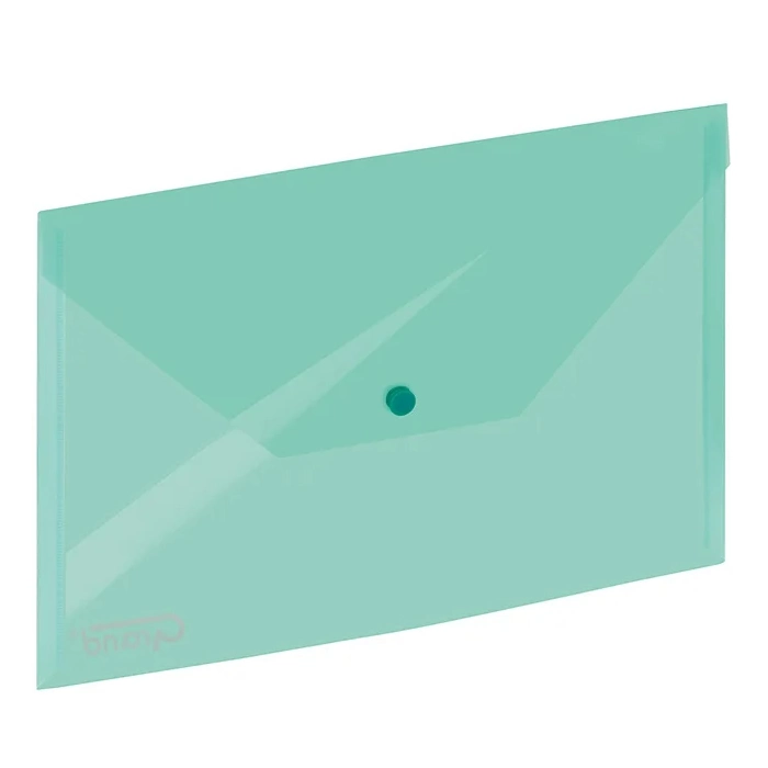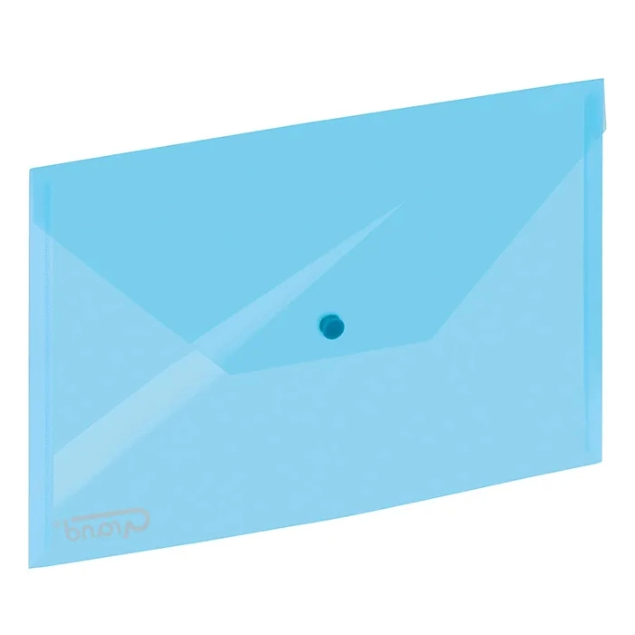 Teczka kopertowa na dokumenty, zamykana na napę. Wykonana z wytrzymałego, półprzezroczystego tworzywa w różnych kolorach.