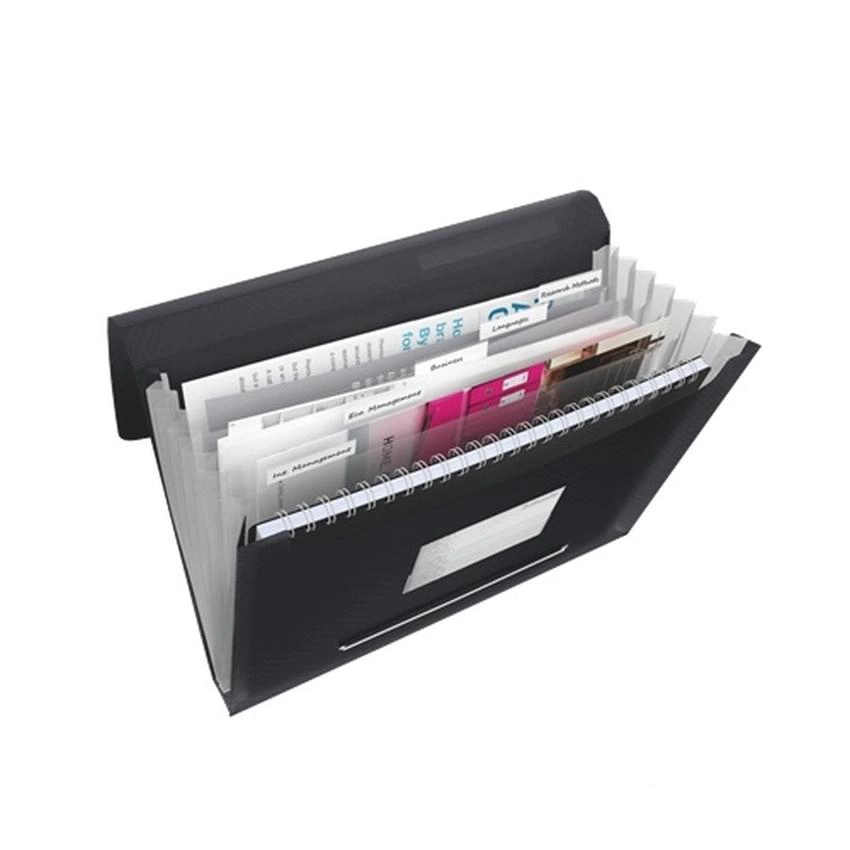 Teczka z przegródkami z polipropylenu (PP), w żywych kolorach i z wyrazistym wzornictwem VIVIDA. Wykonana z półprzezroczystego PP o grubości 0,67 mm, zawiera 6 poszerzanych przekładek z indeksami. Duża pojemność. Do sortowania i przechowywania dokumentów.