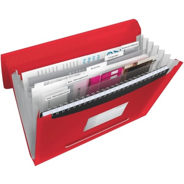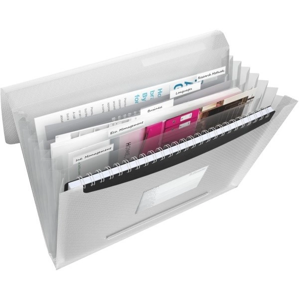 Teczka z przegródkami z polipropylenu (PP), w żywych kolorach i z wyrazistym wzornictwem VIVIDA. Wykonana z półprzezroczystego PP o grubości 0,67 mm, zawiera 6 poszerzanych przekładek z indeksami. Duża pojemność. Do sortowania i przechowywania dokumentów.