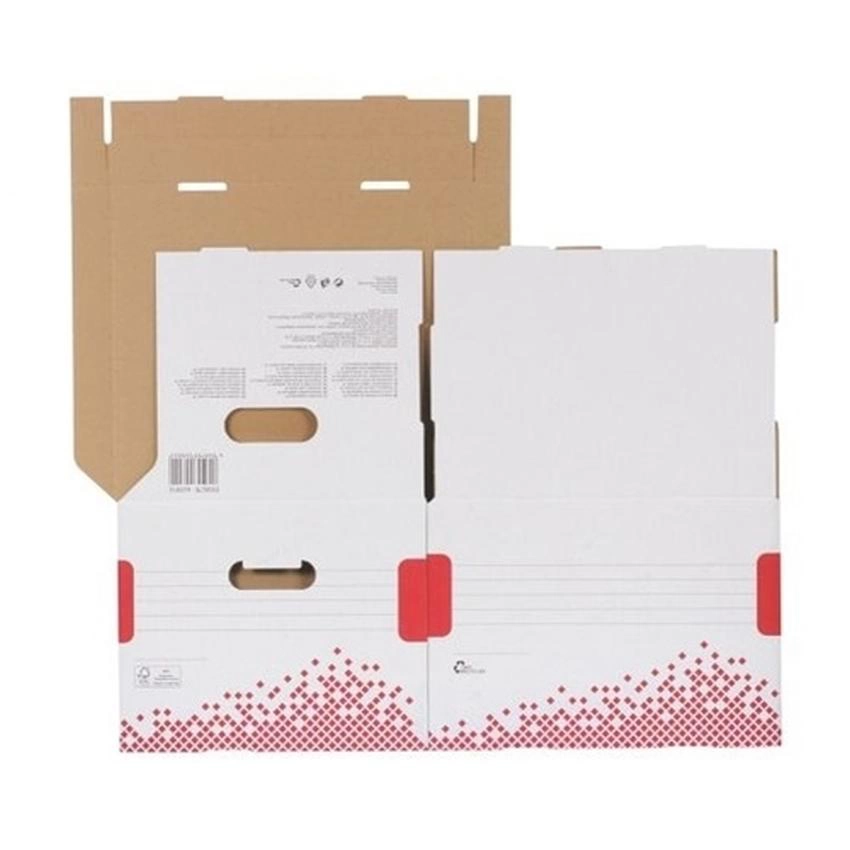 Automatycznie składane dno, oszczędność czasu. Mają podwójne ściany i dno zapewniające stabilną konstrukcję przy ich pełnym zapełnieniu czy przy przenoszeniu. Posiada zintegrowaną pokrywę. Wykonany z kartonu w 100% pochodzącego z recyklingu i w 100% nadającego się do ponownego przetworzenia.