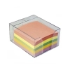 Plastikowy, przezroczysty pojemnik z dodatkową przegrodą na przydatne biurowe drobiazgi oraz papierowym wkładem. Ułatwia zachowanie porządku na biurku.