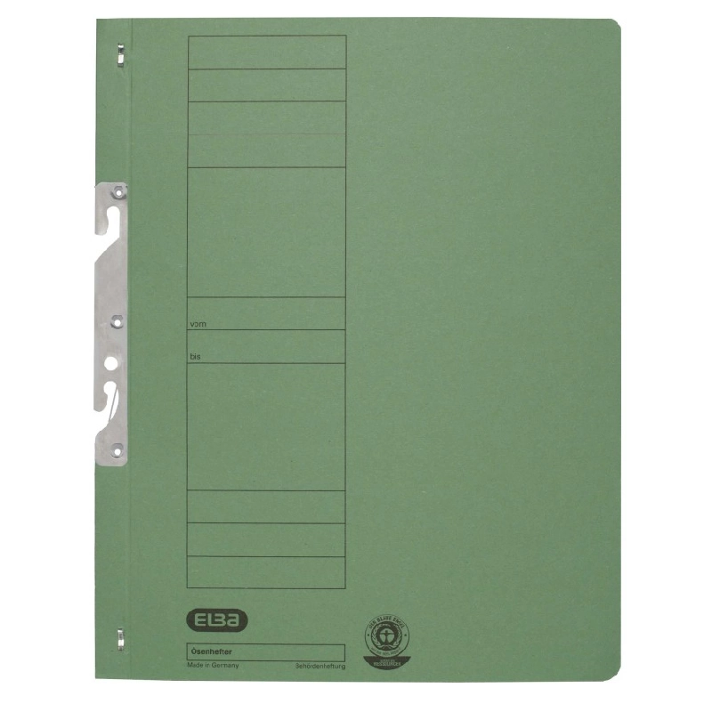 Wysokiej jakości skoroszyt połówkowy wykonany z kartonu 250 g/m2 barwionego w masie. Na przedniej okładce posiada nadrukowane pola do umieszczenia opisów. Zaczep w skoroszycie hakowany pełny pozwala na wpinanie skoroszytu bez konieczności otwierania mechanizmu segregatora.