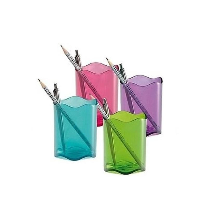 Pojemnik na długopisy, nożyczki, pisaki, itp. Z plastiku w pełnym kolorze lub transparentnego.