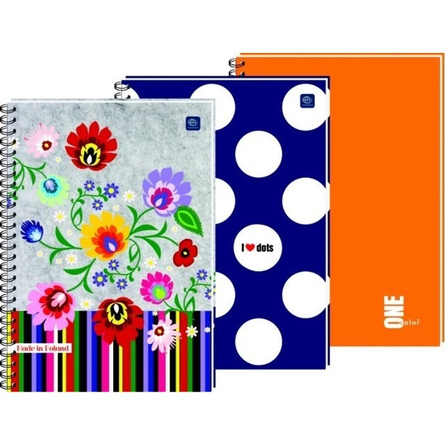 Kołonotatnik w miękkiej oprawie, lakierowany ze spiralą z boku. Kartki z mikroperforacją oraz otworami umożliwiającymi wpięcie do segregatora.