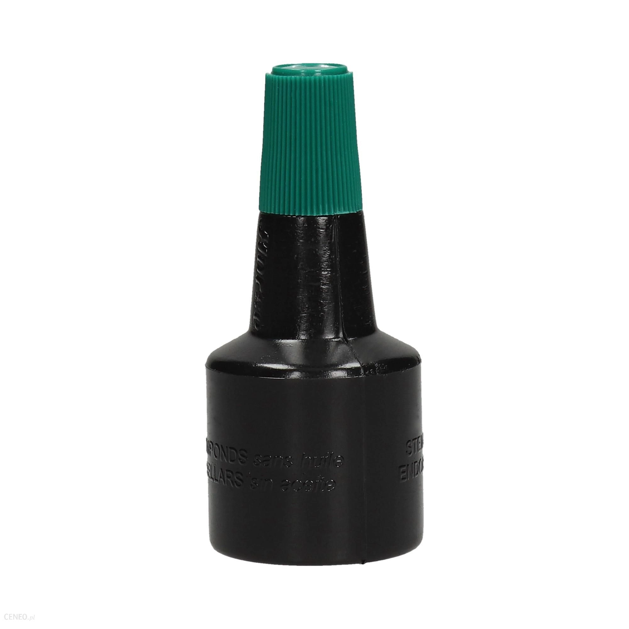 Uniwersalny tusz wodny do stempli ręcznych i samotuszujących, z gumową i polimerową płytką stemplującą. Buteleczka 28 ml z końcówką ułatwiającą nasączenie poduszek oraz nakrętką w kolorze tuszu.