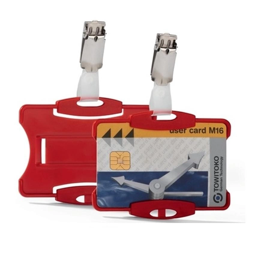 Etui do kart identyfikacyjnych z klipsem do umieszczania dowodu lub karty. Wykonane z wysokiej jakości tworzywa.  Do zawieszenia w pionie lub poziomie. Może być również zastosowane z łańcuszkiem, zawieszką typu smycz z karabińczykiem, lub zwijaczem do identyfikatorów.