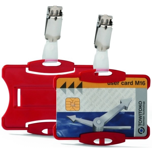 Etui do kart identyfikacyjnych z klipsem do umieszczania dowodu lub karty. Wykonane z wysokiej jakości tworzywa.  Do zawieszenia w pionie lub poziomie. Może być również zastosowane z łańcuszkiem, zawieszką typu smycz z karabińczykiem, lub zwijaczem do identyfikatorów.