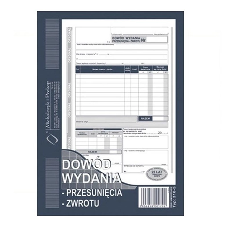 DOWÓD WYDANIA - PRZESUNIĘCIA - ZWROTU 316-3 Dowód wydania - przesunięcia - zwrotu (A5) | indeks: 316-3 | typ:jednostronny