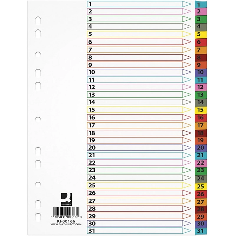Plastikowy, kolorowy indeks pokryty folią Mylar. Pierwsza karta opisowa z numerami w kolorze białym.