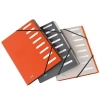 Dzięki zastosowaniu bocznych i dolnych registrów teczka pozwala na wielopoziomową organizację dokumentów. W celu lepszej ochrony zawartości dodatkowo została wyposażona w gumki. Nowoczesne wzornictwo podkreśla profesjonalizm użytkownika.