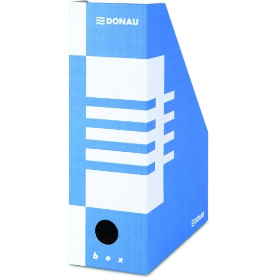 Pojemnik na magazyny wykonany z trójwarstwowej tektury falistej, bezkwasowej.