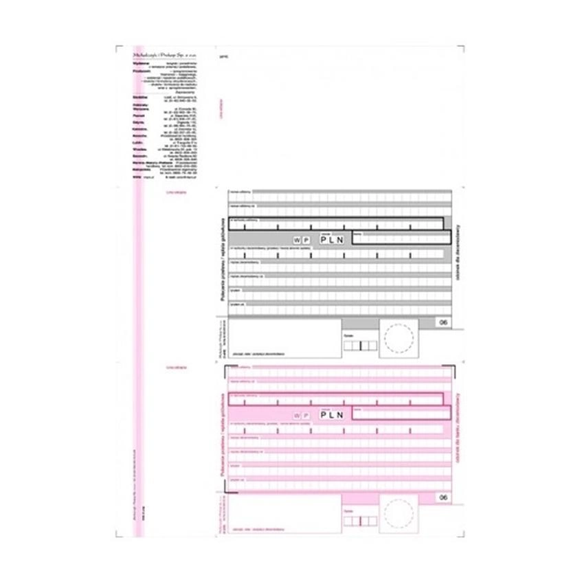 2-ODCINKOWE POLECENIE PRZELEWU - WPŁATA GOTÓWKOWA F-110-2 2-odcinkowe polecenie przelewu/wpł. got. (100ark.) formularz do nadruku/ typ: offset/ indeks: F-110-2/ A4