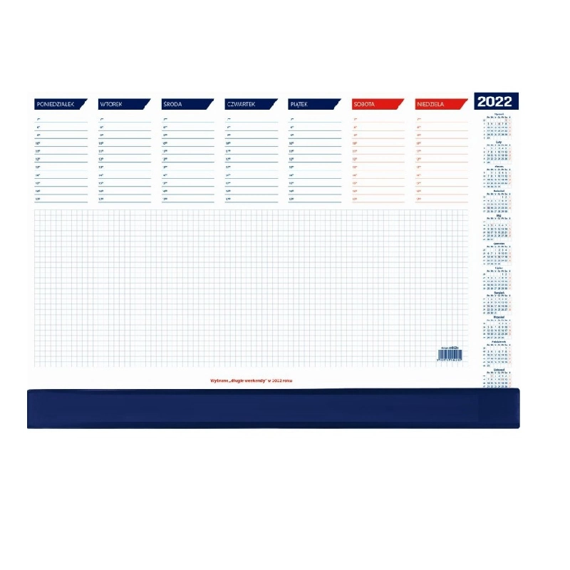 Kalendarz zaprojektowany specjalnie do biura, z dużą powierzchnią do notowania i podręcznym kalendarium.