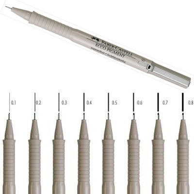 Cienkopis kreślarski Faber Castell Ecco Pigment - z fibrową końcówką, oprawioną metalem, co pozwala na kreślenie przy linijce, pisanie szablonem, szkicowanie.